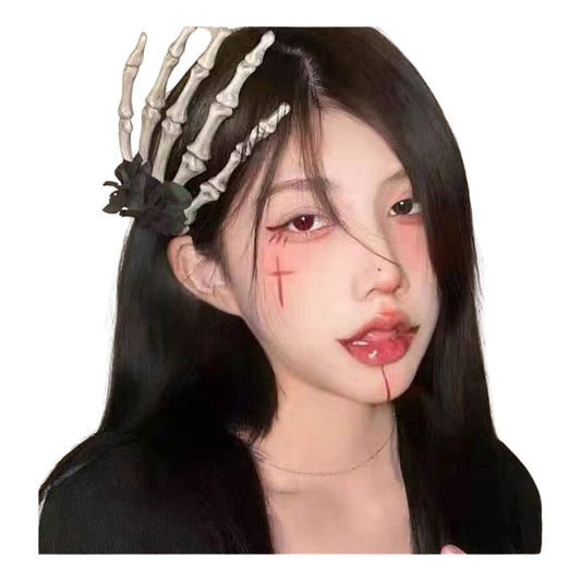 Pinches Cabello Halloween Mano Calavera Horquillas Cosplay Negro-rojo