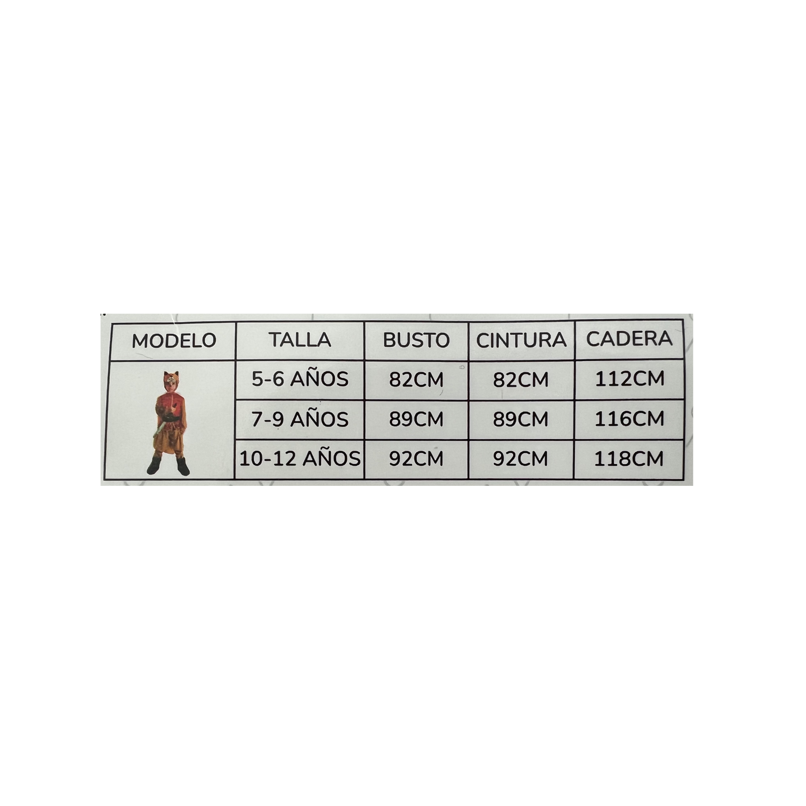 INCLUYE: Polera, Capa, Pantalón, Cinturón, Cubre Zapatos, Gorro de gato