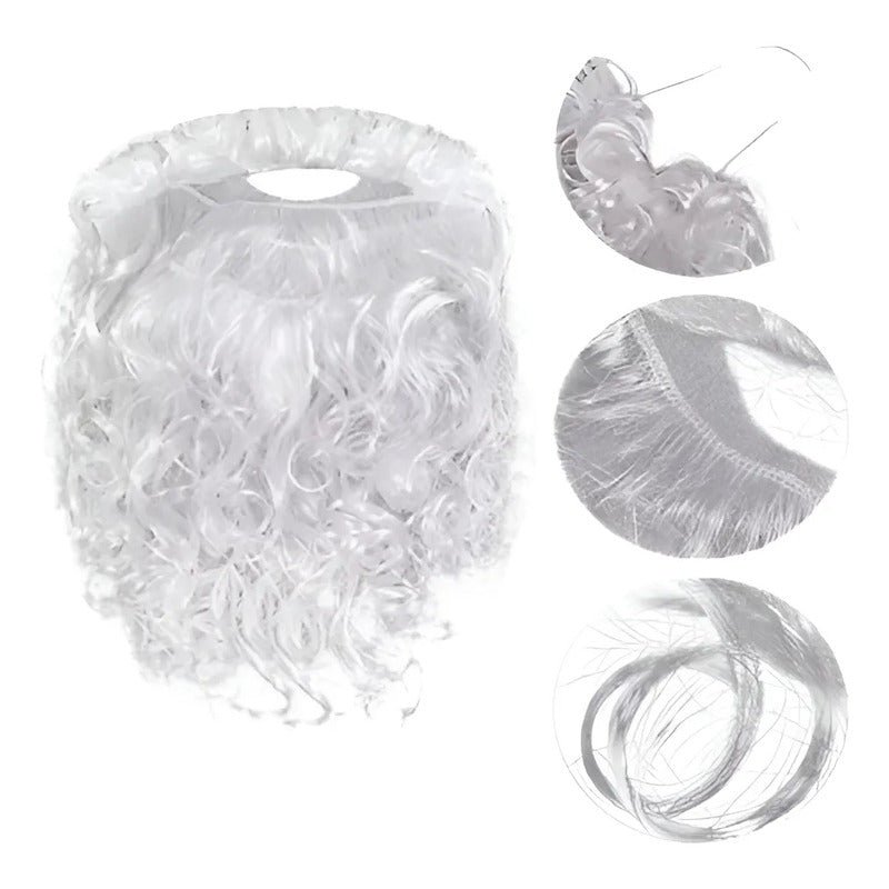 Set Gorro Viejo Pascuero Con Barba De Risos, Santa Claus Blanco/rojo