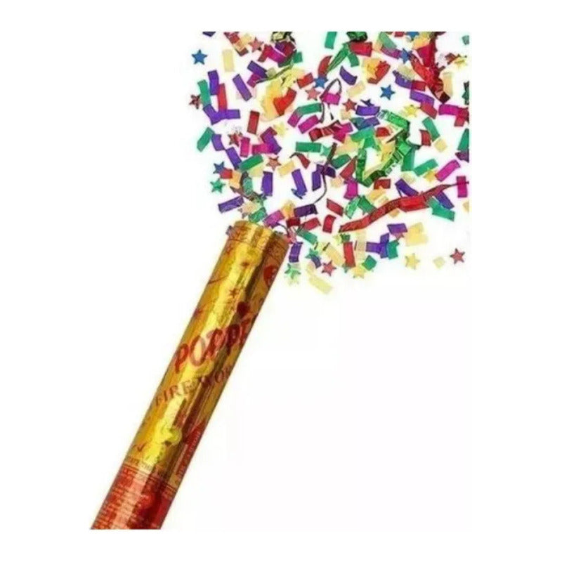 Pack 4 Lanza Confeti 60cm + 6 Serpentina Cotillón Año Nuevo